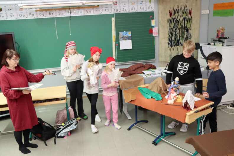 Jouluevankeliumi toteutettiin seurakunnan lastenohjaaja Marja-Leena Liukkosen johdolla. Kuva: Niko Takala