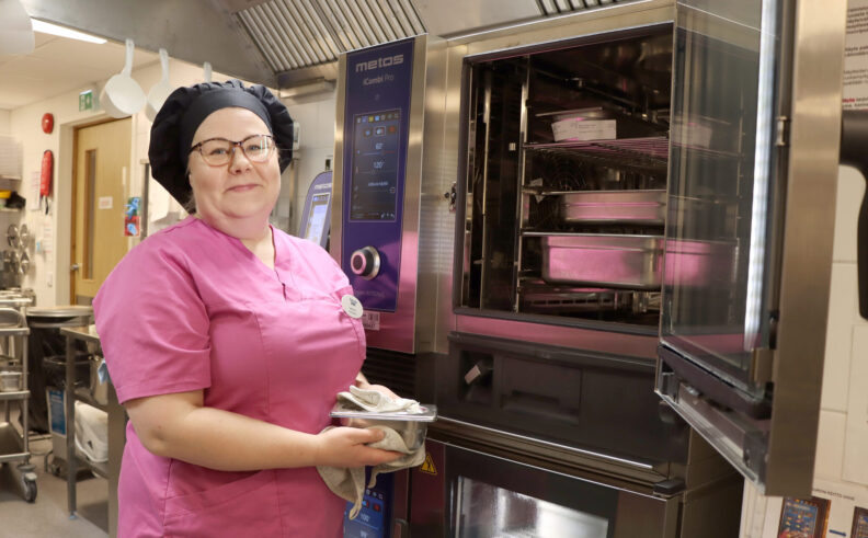 Monen hirvensalmelaisen lounas valmistuu Attendo Pitäjänpirtin keittiöllä. Työn äärellä keittiöpäällikkö Sanna Rytkönen. Kuva: Kirsi Suojoki