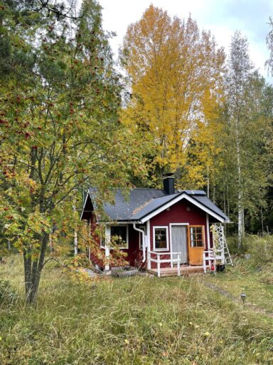 Suonteen saaren pikkuinen mökki, johon liittyy moni Eila Kilpisen kirjoittaman kirjan tarina. Kuva: Kilpisen kuva-arkisto