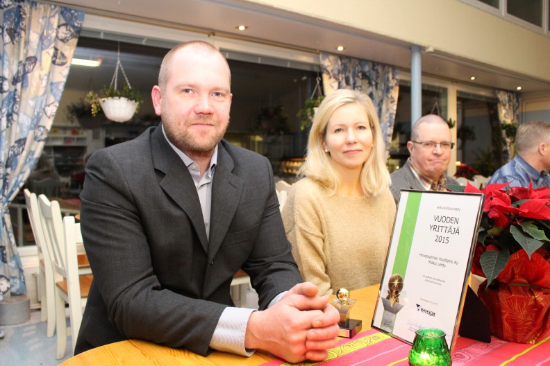 Hirvensalmen Yrittäjät ry kokoontui viime viikolla Kukka-kahvilaan syömään yhteistä jouluateriaa ja pitämään syyskokousta. Yhdistyksellä on ollut jo vuosien ajan tapana valita hirvensalmelainen Vuoden yrittäjä. Tällä kertaa ansiokkaasta yritystoiminnasta palkittiin Hirvensalmen huoltamo Ky:n yrittäjä Mikko Lehto. Valinnan perusteluissa mainittiin, että Seo Baari on ainut joka päivä avoinna oleva ruokapaikka Hirvensalmella. Lehdolle luovutettiin heti tilaisuuden alussa kunniakirja ja Vuoden 2015 yrittäjä-palkinto. Mukana ollut Minna-vaimo sai puolestaan kukkaset.