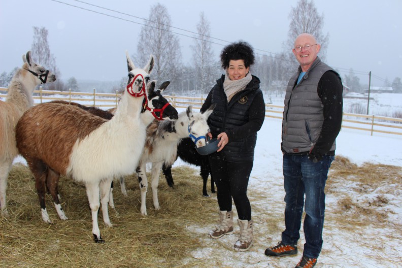 Koirien lisäksi maatilaa asuttavat hauskannäköiset laamat, jotka muuttivat Hirvensalmelle Sveitsistä. Luet aiheesta lisää uusimmasta Hirvensalmelaisesta.